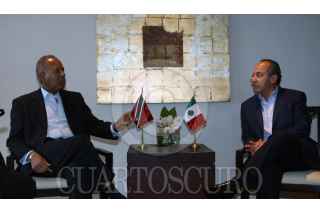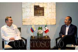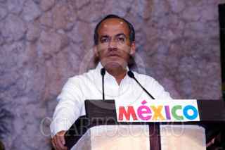 CANCUN, QUINTANA ROO., 15ABRIL2008. El presidente de México Felipe Calderón Hinojosa durante la reunión con el primer ministro de Trinidad y Tobago Patrick Maninn. FOTO: ALFREDO GUERRERO/CUARTOSCURO.COM