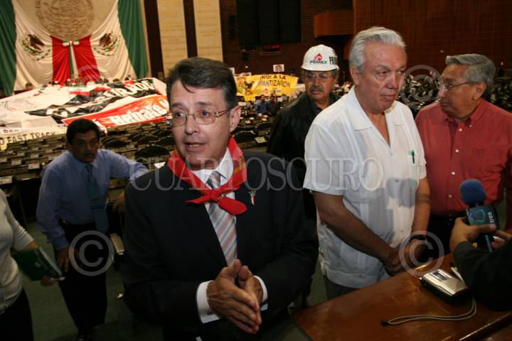 MÉXICO D.F. 16ABRIL2008.-Los diputados integrantes del Frente Amplio Progresista ofrecieron una conferencia de prensa a medios internacionales para actulizar la información que ellos estan manejando. En la imagen los diputados Alfonso Suarez del Real Raymundo Cardenas, José Jaques y Cuahutémoc Sandoval Ramírez. FOTO: GUILLERMO PEREA /CUARTOSCURO.COM