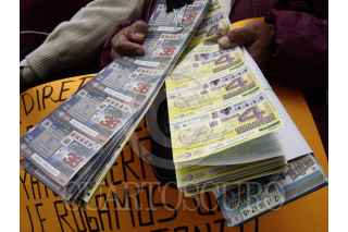 XALAPA, VERACRUZ, 17ABRIL2008.- La organización de vendedores de boletos de loteria de xalapa se sumo al paro nacional del gremio ante la disminución de sus bonos y prestaciones por parte de la direccion general. Los billeteros subsisten de las comisiones de sus ventas que son del 9 % ya que no cuentan con un salario fijo. FOTO: JORGE VALDÉS/CUARTOSCURO.COM