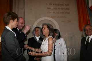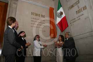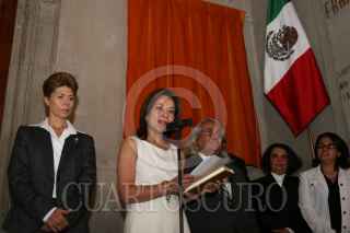 MÉXICO D.F. 18ABRIL2008.-Se llevo acabo esta mañana la debelación en letras de oro del fragmento del poema "Priedra de Sol" en una forma de homenaje al premio Nobel, Octavio PAZ, esto en las instalaciones del SEP.En la imagen la titular de la SEP. Josefina Vázquez Mota FOTO: GUILLERMO PEREA /CUARTOSCURO.COM