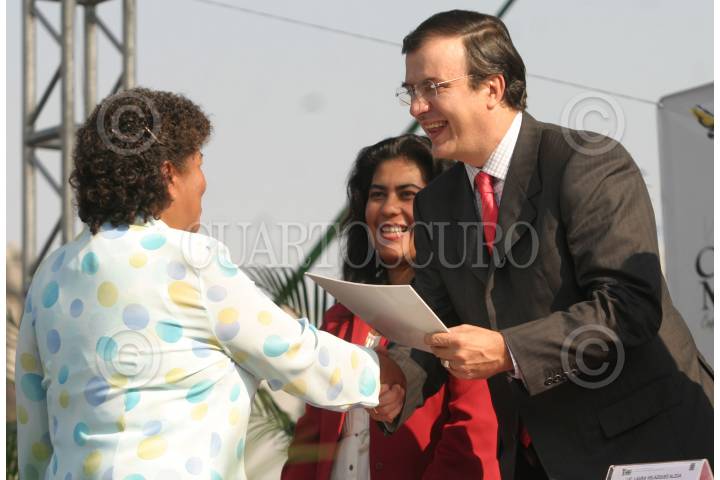 MÉXICO, D.F., 18ABRIL2008.- Beneficiarios del programa de Microcréditos de Autoempleo para la Micro, Pequeña y Mediana Empresa, durante la ceremonia de entrega encabezada por parte del Jefe de Gobierno que se realizó en la plancha del Zócalo. FOTO: MOISÉS PABLO/CUARTOSCURO.COM