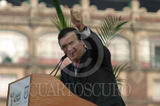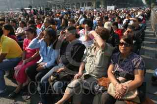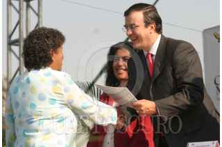 MÉXICO, D.F., 18ABRIL2008.- Beneficiarios del programa de Microcréditos de Autoempleo para la Micro, Pequeña y Mediana Empresa, durante la ceremonia de entrega encabezada por parte del Jefe de Gobierno que se realizó en la plancha del Zócalo. FOTO: MOISÉS PABLO/CUARTOSCURO.COM