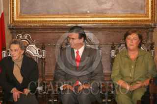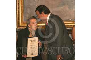 MÉXICO, D.F., 22ABRIL2008.- El gobierno del Distrito Federal hizo entrega a la Artista Plastica Leonora Carrington la medalla y pergamino de Ciudadana Distinguida. En la imagen Marcelo Ebrard, Jefe Capitalino acompañando a la Artista Plastica. FOTO: HUGO CRUZ CRUZ/CUARTOSCURO.COM