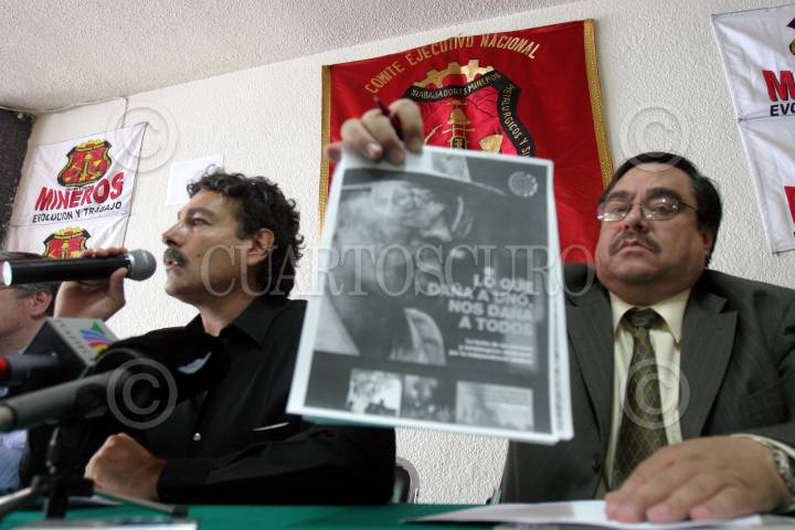 MÉXICO, D.F., 23ABRIL2008.- Carlos Pavón, secretario de asuntos políticos del Sindicato Minero, durante una conferencia de prensa en la cual exigen atraves de varios sindicatos metalúrgicos a nivel mundial que el gobierno de México cese su campaña de represión contra los sindicatos independientes de nuestro país. FOTO: MOISÉS PABLO/CUARTOSCURO.COM