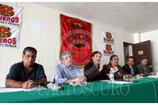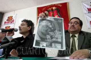 MÉXICO, D.F., 23ABRIL2008.- Carlos Pavón, secretario de asuntos políticos del Sindicato Minero, durante una conferencia de prensa en la cual exigen atraves de varios sindicatos metalúrgicos a nivel mundial que el gobierno de México cese su campaña de represión contra los sindicatos independientes de nuestro país. FOTO: MOISÉS PABLO/CUARTOSCURO.COM