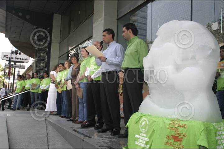 MÉXICO, D.F., 23ABRIL2008.- Legisladores del Partido Verde Ecologista de México, se manifestaron pacificamente a las afueras de la Secretaria de Energia, proponiendo que en la nueva reforma energetica incluyan una nueva ley para el aprovechamiento de las fuentes renovables de energia. FOTO: SAÚL LÓPEZ/CUARTOSCURO.COM