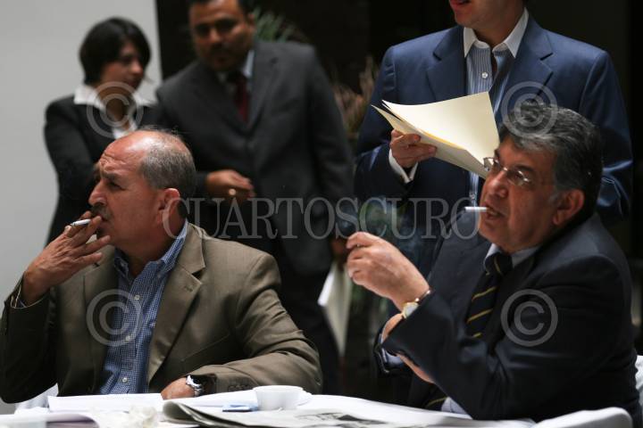 MÉXICO D.F. 24ABRIL2008.-Se realizó la reunión de trabajo de la Comisión de Puntos Constitucionales en la Cámara de Diputados.En la imagen los diputados, Juan Guerra (PRD) y José Mutrat (PRI). FOTO: GUILLERMO PEREA / CUARTOSCURO.COM