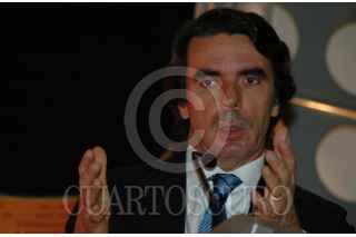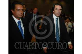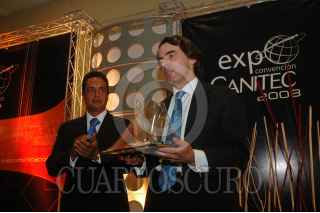 MÉXICO, D.F., 25ABRIL2008.- Alejandro Puente, presidente de Canitec dío un reconocimiento al expresidente de España José María Aznar al termino de una conferencia magistral del tema de telecomunicaciones. FOTO: RODOLFO ANGULO/CUARTOSCURO.COM