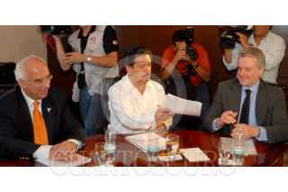 MÉXICO D.F. 25ABRIL2008.-Senadores de las diversas fuerzas políticas firmaron a un acuerdo con el cual los diputados y senadores integrantes de a FAP, desalojaran las tribunas que mantenian tomada desde hace 16 Días. FOTO: CUARTOSCURO.COM