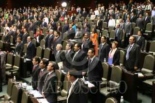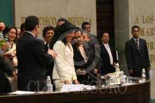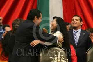 MÉXICO D.F. 30ABRIL2008.-La diputada del PRD, Ruth Zavaleta clausuro el segundo periodo de sesiones del segundo año de trabajo en la Cámara de Diputados.En la imagen es felicitada por el diputado Hector Larios (PAN). FOTO: GUILLERMO PEREA /CUARTOSCURO.COM
