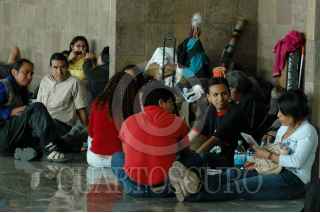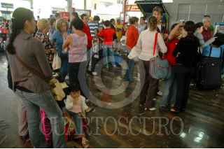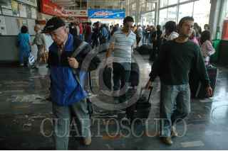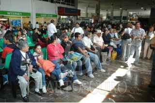 MÉXICO D.F., 01MAYO 2008.- Decenas de personas esperan su autobús en la Central de Autobuses del sur para aprovechar este puente por motivo de días festivos. FOTO: RODOLFO ANGULO/CUARTOSCURO.COM