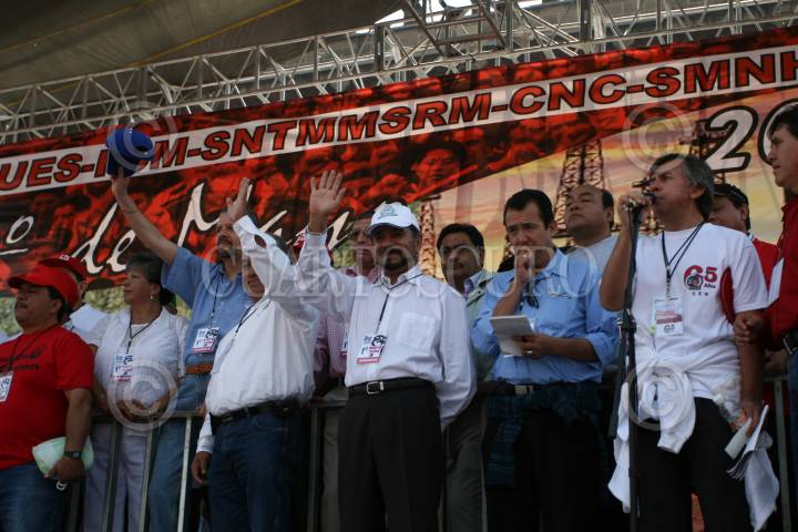 MÉXICO, D.F. 01MAYO2008.-Con una marcha por la mañana integrantes de diversos sindicatos independientes celebraron el Día Internacional del Trabajo, en la plancha del Zócalo capitalino.En la imagen Francisco Hernandez Juarez,Martin Esparza y Agustin Rodríguez, entre algunos lideres mas. FOTO: CUARTOSCURO.COM