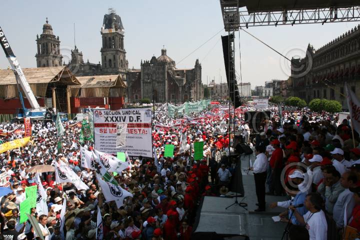 MÉXICO, D.F. 01MAYO2008.-Con una marcha por la mañana integrantes de diversos sindicatos independientes celebraron el Día Internacional del Trabajo, en la plancha del Zócalo capitalino.En la imagen Francisco Hernandez Juarez,Martin Esparza y Agustin Rodríguez, entre algunos lideres mas. FOTO: CUARTOSCURO.COM