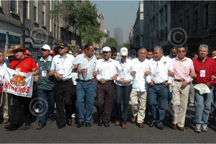 MÉXICO, D.F. 01MAYO2008.-Con una marcha por la mañana integrantes de diversos sindicatos independientes celebraron el Día Internacional del Trabajo, en la plancha del Zócalo capitalino.En la imagen Francisco Hernandez Juarez,Martin Esparza y Agustin Rodríguez, entre algunos lideres mas. FOTO: CUARTOSCURO.COM