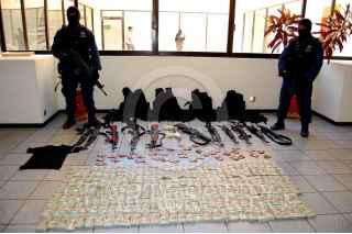 CULIACAN, SINALOA.,01MAYO2008.- Elementos de la Policía Federal, en coordinación con efectivos del Ejército Mexicano, el dia de ayer aseguraron 18 armas largas y cortas, granadas, cargadores, cartuchos, ropa táctica y más de 379 mil dólares en la calle Rubí número 1029 de la Colonia Guadalupe. FOTO: SSPF/CUARTOSCURO.COM