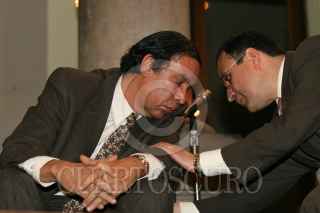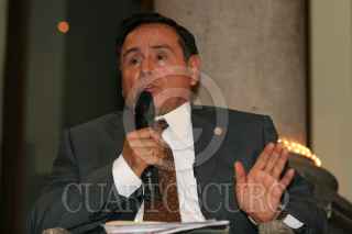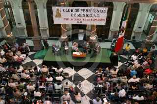 MÉXICO,D.F.02MAYO.2008.- Juan Ramon Jimenez, academico de la UNAM y Jorge Santa Cruz. coordinador de Actividades Académicas de la Asociación de Radiodifusores del Valle de México, durante el foro "PEMEX Seguridad Nacional y Petróleo", realizado en el Club de Periodistas. FOTO: SAUL LOPEZ/CUARTOSCURO.COM