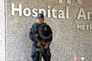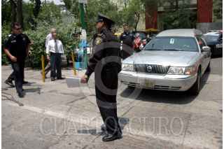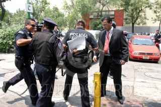 MÉXICO, D.F., 08MAYO2008.- Fue trasladado bajo fuertes medidas de seguridad el cuerpo de Edgar Millán Gómez, comisionado de la PFP quien fue ejecutado esta madrugada en la colonia Guerrero; en una carroza del hospital Angeles hacia el SEMEFO donde policías auxiliares no permitieron el acceso por falta de tramites. FOTO: PEDRO MARRUFO/CUARTOSCURO.COM