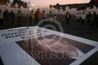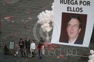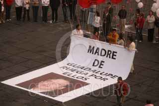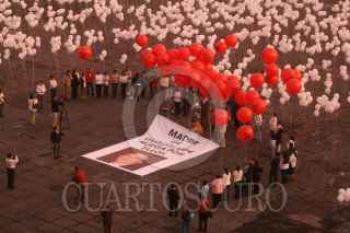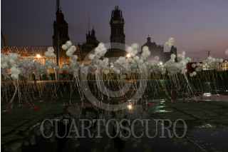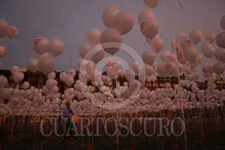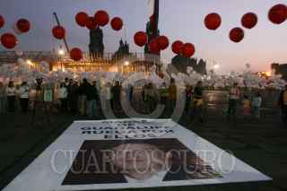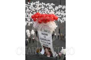 MÉXICO, D.F., 09MAYO2008.- Integrantes de pro-vida encabezados por Jorge Serrano Limon colocaron cientos de globos en la plancha del Zócalo de la ciudad y una manta con la imágen del jefe de Gobierno al mismo que rezaban y pedian por los legisladores que aprobaron la ley pro-aborto. FOTO: SÁSHENKA GUTIÉRREZ/CUARTOSCURO.COM