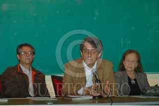 MÉXICO, D.F., 09MAYO2008.- Enriquez Gonzalez, el escritor Carlos Montemayor y la senadora Rosario Ibarra durante una conferencia de prensa al termino de una reunión de mediadores para establecer un dialogo entre el EPR y el gobierno federal. FOTO: RODOLFO ANGULO/CUARTOSCURO.COM