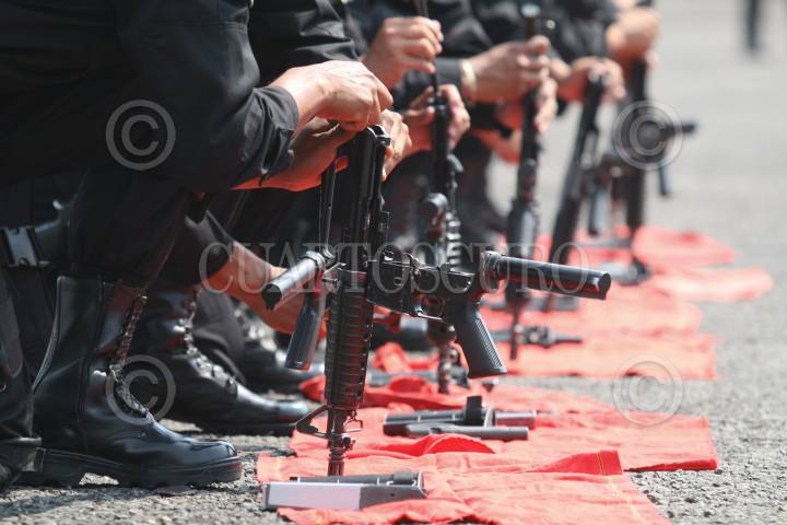 MÉXICO, D.F., 09MAYO2008.-Joel Ortega titular de la Secretaría de Seguridad Pública del Distrito Federal, acudio a las instalaciones en Tlahuac, donde se realizó la clausura del 5o. Escalón del Curso de Inducción del Agrupamiento Fuerza de Tarea, los cuales al termino de la ceremonia realizarón una exibición de las maniobras de aprendidas en el curso. FOTO: GUILLERMO PEREA/CUARTOSCURO.COM