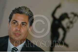 MÉXICO D.F., 11MAYO2008.- El secretario de Turismo, Alejandro Rojas Díaz Durán momentos antes de ofrecer una conferencia de prensa para dar a conocer el Programa de Apoyo y Promoción Turística con motivo del Concierto que ofrecerá la “Fundación Alas” en el Zócalo de la Ciudad de México FOTO: RODOLFO ANGULO/CUARTOSCURO.COM