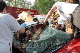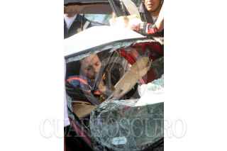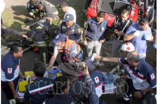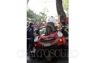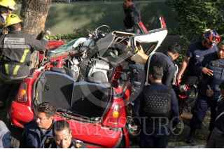 MÉXICO, D.F., 11MAYO2008.- Sobre avenida Reforma y Prado Norte, en Lomas de Chapultepec, una persona resultó gravemente lesionada al chocar su auto contra un árbol al perder el control en una curva. Rescatistas lo sacaron del auto en el cual quedó prensado. FOTO: PEDRO MARRUFO/CUARTOSCURO.COM