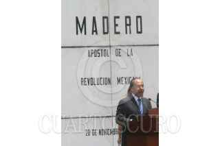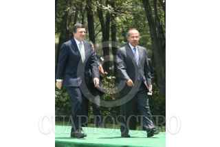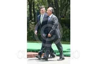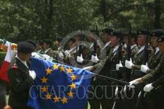 MÉXICO, D.F., 12MAYO2008.- Elementos del ejercito guardan las banderas de México e Unuión Europea al término de la ceremonia oficial de bienvenida a José Manuel Durao Barroso presidente de la comisión Europea, en el monumento a Francisco I madrero en la residencia oficial de los Pinos. FOTO: SÁSHENKA GUTIÉRREZ/CUARTOSCURO.COM