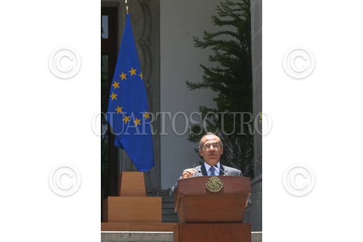 MÉXICO, D.F., 12MAYO2008.- José Manuel Durao Barroso, presidente de la Comisión Europea durante una rueda de prensa con Felipe Calderon Presidente de México en la residencia oficial de los Pinos de Ciudad de México. FOTO: SÁSHENKA GUTIÉRREZ/CUARTOSCURO.COM
