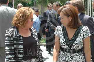 MÉXICO, D.F., 12MAYO2008.- Elba Esther Gordillo presidenta del CEN conversa con Josefina Vázquez Mota Secretaria de Educación Pública al término del lanzamiento de la campaña elñige estar bien contigo, realizada en las instalaciones de Televisa San Angel. FOTO: IVÁN MÉNDEZ/CUARTOSCURO.COM