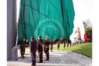 MÉXICO, D.F., 12MAYO2008.- Abelardo Escobar Prieto Secretario de la Reforma Agraria izó la bandera munumental en campo Marte. FOTO: CUARTOSCURO.COM