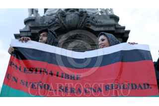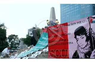 MÉXICO, D.F., 16MAYO2008.- La tarde de ayer la Coordinación "Solidaridad Por el Pueblo Palestino", realizó una protesta por los 60 años de ocupacion Israelí en territorio Palestino en el Angel de la Independencia. FOTO:ELIZABETH GREENE/CUARTOSCURO.COM