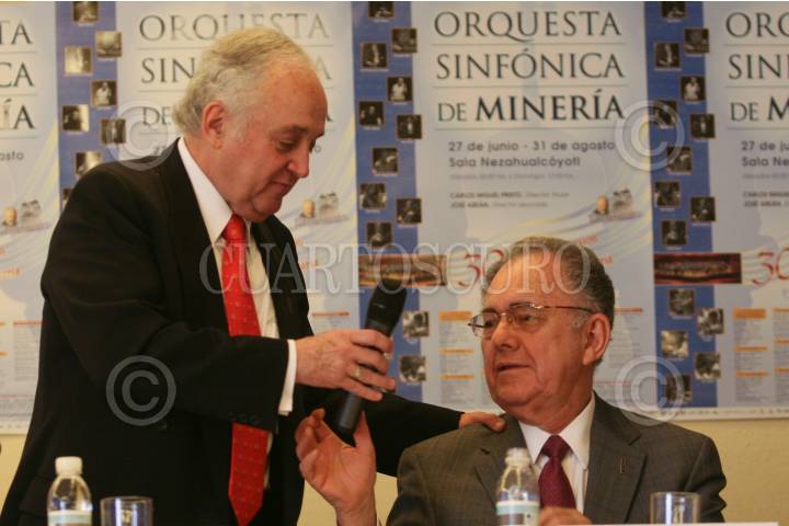 MÉXICO D.F.16MAYO2008.-En conferencia de prensa se dio a conocer el programa de la temporada de verano que se realizara con obras del compositor ruso P.I. Tchaikovsky con el cual se conmemorara el 30 Aniversario de la Orquesta Sinfónica de Minería.En la imagen Carlos de la Mora presidente de la Academia de Musica del Palacio de Minería es acompañado por Javier Jiménez Espriú de la Junta de Honor de la academia y José Areán. FOTO: GUILLERMO PEREA/CUARTOSCURO.COM