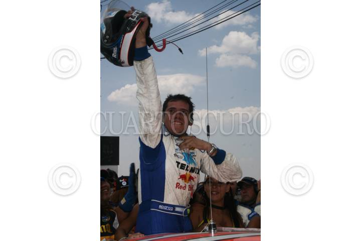 GUADALAJARA, JALISCO 18MAYO2008.- Rubén Rovelo sale de su automóvil al cruzar la meta en primer lugar dentro de la cuarta fecha del serial Nascar Corona Series. FOTO: SASHENKA GUTIERREZ/CUARTOSCURO.COM