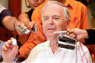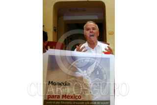 OAXACA, OAXACA, 23MAYO2008.- Hugo Salinas Price, fundador de la Asociación Pro Plata de México, presentó su proyecto de iniciativa que plantea hacer moneda de plata de curso legal la “Onza Libertad”, durante una conferencia de prensa en la capital oaxaqueña. FOTO: MAX NÚÑEZ/CUARTOSCURO.COM