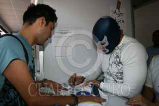 MÉXICO D.F., 24MAYO2008.- El luchador Blue Demon Jr, durante la inscripcion de participantes de la carrera kilometros de lucha a realizarse el día mañana. FOTO: SÁSHENKA GUTIERREZ/CUARTOSCURO.COM