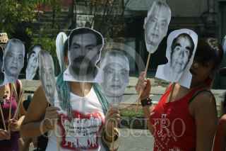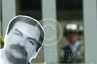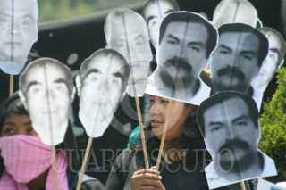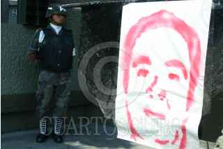 MÉXICO, D.F., 25MAYO2008.- Amigos y familiares de Edmundo Reyes, preso político integrante del Ejército Popular Revolucionario, se manifestaron frente las instalaciones del Campo Militar 1, para reclamar la liberación del mismo, a un año de su desaparición. FOTO: RICARDO CASTELAN/CUARTOSCURO.COM