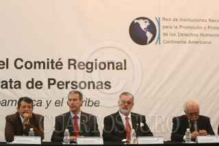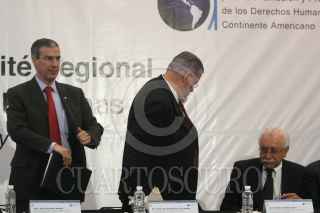 MÉXICO, D.F., 26MAYO2008.- José González Morfín Vicepresidente de la Mesa Directiva del Senado de la República , José Luis Soberanes, Ramón Custodio Comisionado Nacional para los Derechos Humanos en Honduras, durante la reunión de trabajo contra la trata de personas México, Centroamérica y el Caribe. FOTO:SÁSHENKA GUTIÉRREZ/CUARTOSCURO.COM