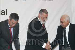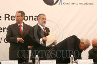 MÉXICO, D.F., 26MAYO2008.- José González Morfín Vicepresidente de la Mesa Directiva del Senado de la República , José Luis Soberanes, durante la reunión de trabajo contra la trata de personas México, Centroamérica y el Caribe. FOTO:SÁSHENKA GUTIÉRREZ/CUARTOSCURO.COM