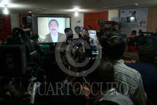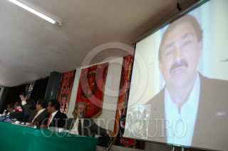 MÉXICO, D.F., 26MAYO2008.- Nestor De Buen durante la conferencia por medio de video del Lider Minero Napoleón Gómez Urrutia. FOTO:SÁSHENKA GUTIÉRREZ/CUARTOSCURO.COM
