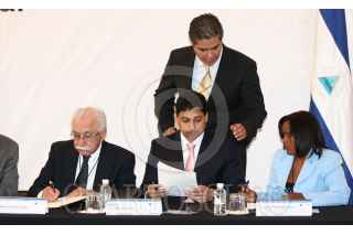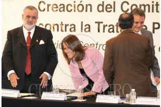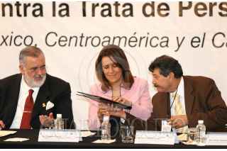MÉXICO, D.F., 26MAYO2008.- José Luis Soberanes presidente de la Comisión Nacional de Derechos Humanos, Margarita Zavala esposa del presidente de México Felipe Calderón y Omar Cabezas Lacayo, presidente de la Federación Iberoamericana de Ombusman, durante la firma de convenio del Comité Regional de México, Centroamérica y el Caribe contra la Trata de Persona. FOTO: SAÚL LÓPEZ/CUARTOSCURO.COM