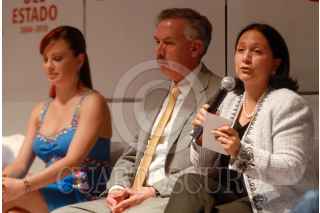 MÉXICO D.F. 28MAYO2008.- Maria José, Alejandro Garza Director de la academia de la Musica Grabada y Amalia García Medina, Gobernadora de Zacatecas en la conferencia de prensa en la cual anunciarón que esta ciudad sera la sede para la entrega de los Premios OYE! 2008. FOTO: FELIPE CASTELLANOS/CUARTOSCURO.COM