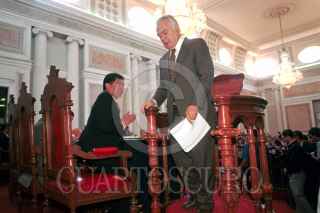 El ex presidente Miguel de la Madrid participó al final de su intervención durante la instalación del Consejo Consultivo del Municipio Mexicano. FOTO:Oswaldo Ramírez/CUARTOSCURO.COM