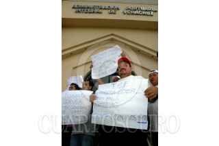 VERACRUZ, VERACRUZ. 29MAYO2008.- Un pequeño grupo de trabajadores de la empresa de Cargas Especializadas se manifestarón en representación de todos sus compañeros en la puerta de acceso de APIVER exigiendo el pago de su reparto de utilidades mismo que desde hace un año no les han hecho efectivo. FOTO: JOSE CANDELARIO/CUARTOSCURO.COM