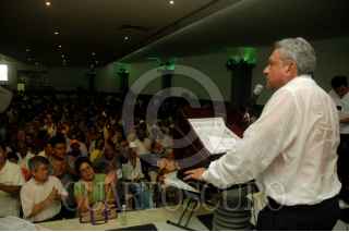 VERACRUZ, VERACRUZ. 30ABRIL2008.- En su gira por el estado de Veracruz, Andres Manuel López Obrador, tomo protesta a los brigadistas del comité estatal por la defensa del petroleo esta tarde. FOTO: JOSÉ CANDELARIO/CUARTOSCURO.COM