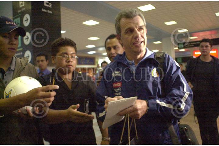 Jared Borguetti, a su llegada al aeropuerto internacional de la ciudad de México, después del triunfo de la selección nacional ante Bulgaria en Nueva York. FOTO: Victoria Valtierra/CUARTOSCURO.COM