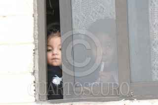 MÉXICO, D.F., 31MAYO2008.- Por la ventana de unas vencidad se asoman un par de niñas que tratan de observar el espectaculo de titeres que se presentó en la explanada de la vencidad de Los Palomares en la colonia de Tepito. FOTO: MOISÉS PABLOCUARTOSCURO.COM