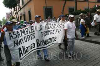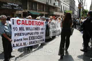 MÉXICO D.F. 05JUNIO2008.-Exbraceros acudieron a las inmediaciones del Senado de la República, a protestar por la falta de pago de una indemnización prometido por el gobierno federal. FOTO: GUILLERMO PEREA/CUARTOSCURO.COM