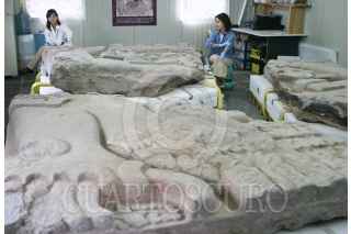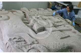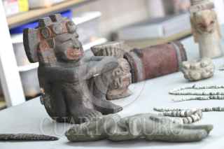 MÉXICO, D.F., 06JUNIO2008.- Aspecto de la ofrenda en donde también fue encontrada la diosa Tlaltecuhtli abajo de la Casa de las Ajaracas, a un costado del Templo Mayor y que es restaurada y catalogada para su posterior exhibición. FOTO: RODOLFO ANGULO/CUARTOSCURO.COM