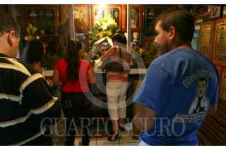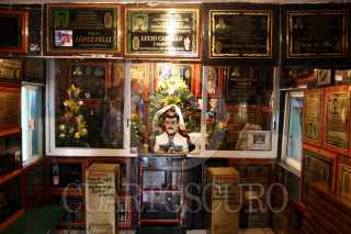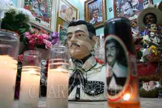 CULIACAN, SINALOA,.05JUNIO2008.- Jesús Malverde es un personaje del folclore del estado de Sinaloa, venerado como santo por muchos, Malverde es conocido como "El Bandido Generoso" o "El Ángel de los Pobres"; también se le conoce como "El Santo de los Narcos". En diversas historias cuentan que era una especie de Robin Hood. ya que robaba a los ricos para darselos a los pobres. Algunas personas afirman que su devocion ha crecido, en su capilla diariamente reciben visitas, donde le dejan , veladoras, dolares, cadenas de oro, brillantes, diamantes, y pertenencias personales de alto valor. es muy comun ver que diario por las tardes que algunos habitantes de Sinaloa le lleban tambora. Algunas peronas afirman que famosos narcotraficantes como Rafael Caro Quintero, Ernesto Fonseca, Miguel Angel Félix Gallardo y Amado Carrillo Fuentes han acudido a la capilla de Malverde. FOTO: SAUL LOPEZ/CUARTOSCURO.COM