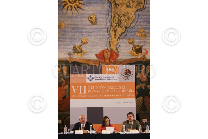 MÉXICO, D.F., 11JUNIO2008.- Josefina Vazquez Mota, Secretaría de Educación Pública, encabezó la 7a. Reunión Nacional Plenaria Extraordinaria del Consejo Nacional de Autoridades Educativas, en el salón Hispanoamericano de le sede de la SEP. FOTO: MOISÉS PABLO/CUARTOSCURO.COM